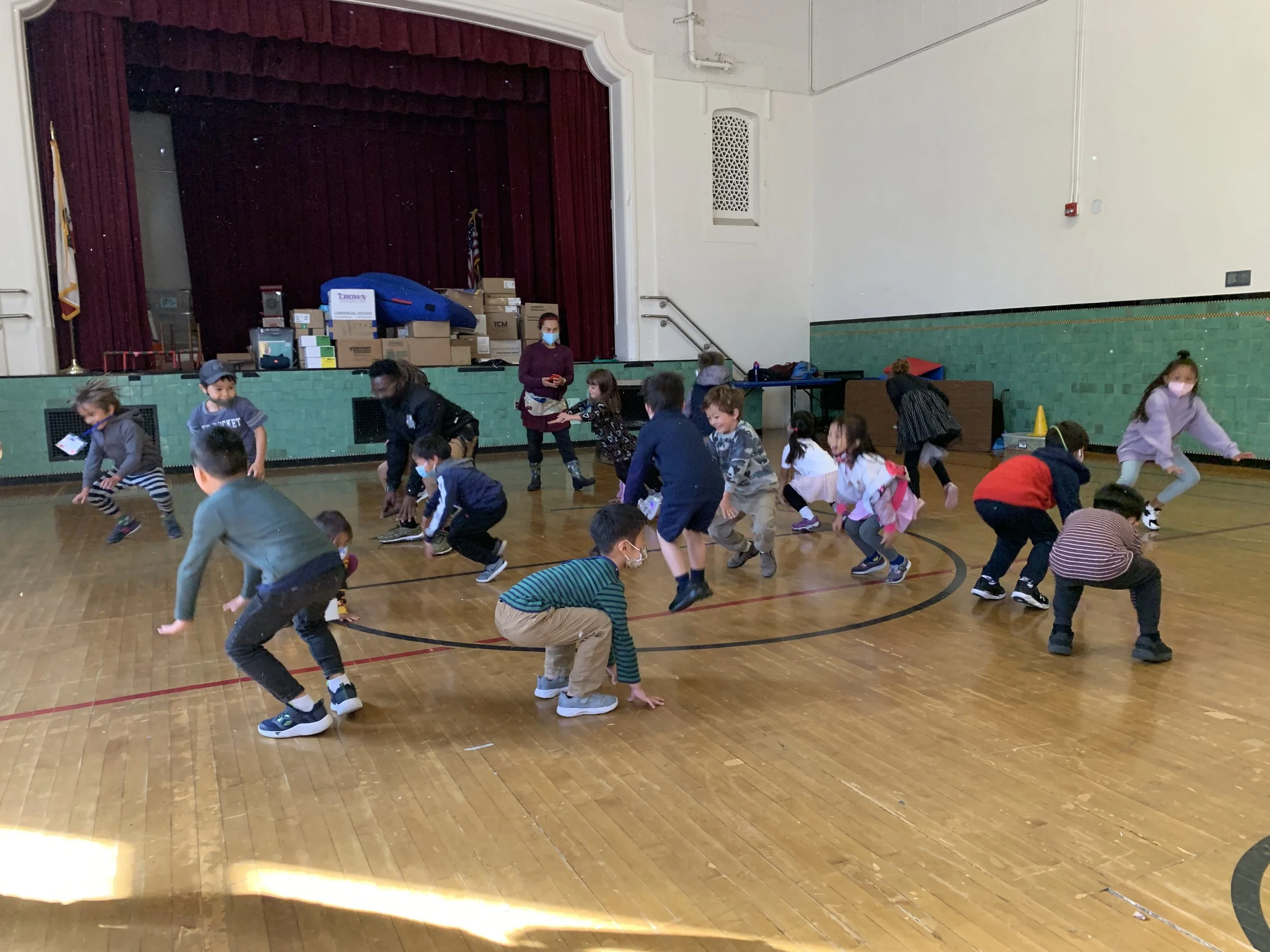 Twice a week, the kids have class with our two PE teachers. They use this time to learn healthy ways to move their body, have fun competitions, and learn important motor skills.
